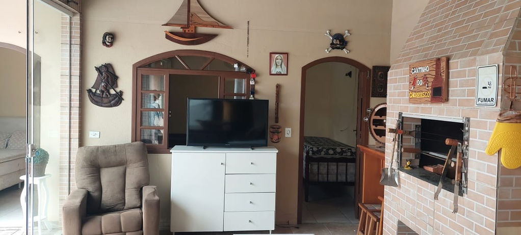 Imóvel amplo com piscina, estilo rustico praiano, com 03 dormitórios, possui cozinha completa com utensilios, churrasqueira, ar condicionado e ventiladores, estacionamento.
