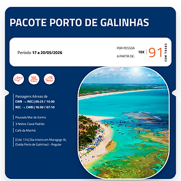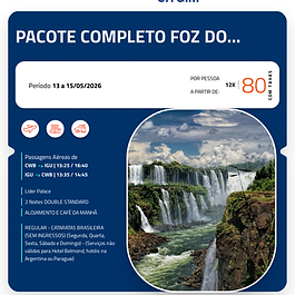 Pacote completo (a partir de 10x R$ 143,00 por pessoa)