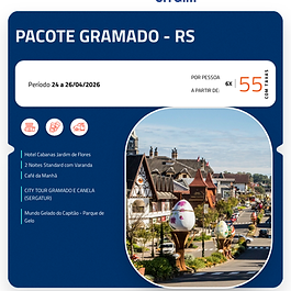 Pacote completo para Gramado (a partir de 12x R$ 77,00 por pessoa)